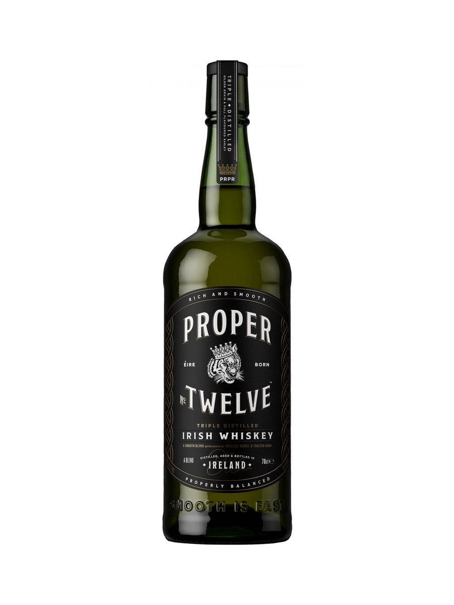 Proper No. Twelve’s Triple Distilled Irish Whiskey is an ultra-smooth blend of golden grain and single malt with hints of vanilla, honey and toasted wood for a rich complexity.